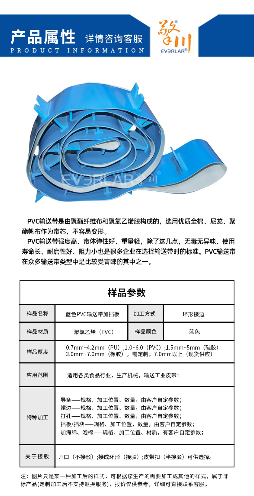 產(chǎn)品名稱:藍(lán)色PVC輸送帶加擋板