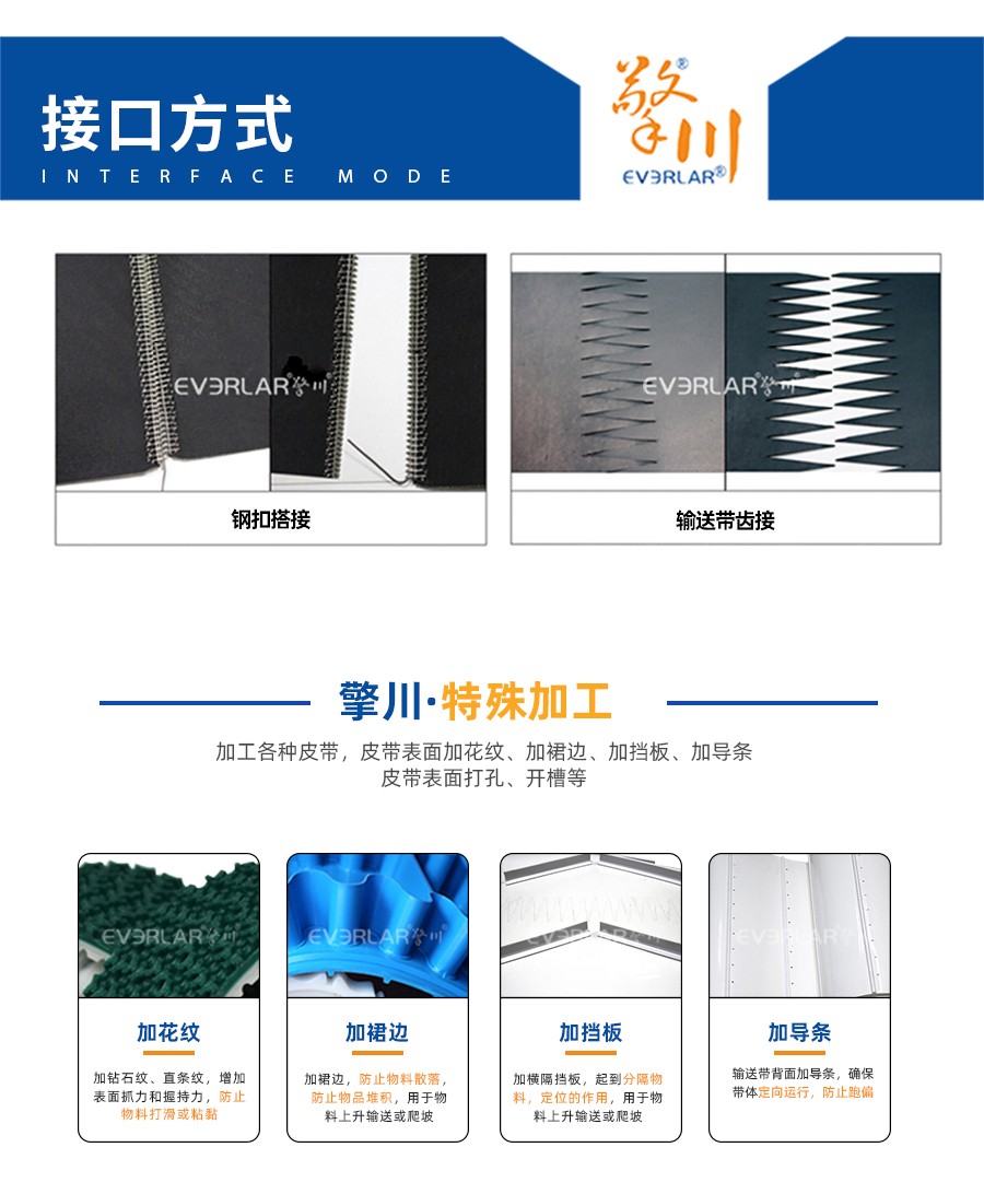 PVC輸送帶是由聚酯纖維布和聚氯乙烯膠構(gòu)成的,選用優(yōu)質(zhì)全棉、尼龍、聚酯帆布作為帶芯,不容易變形。