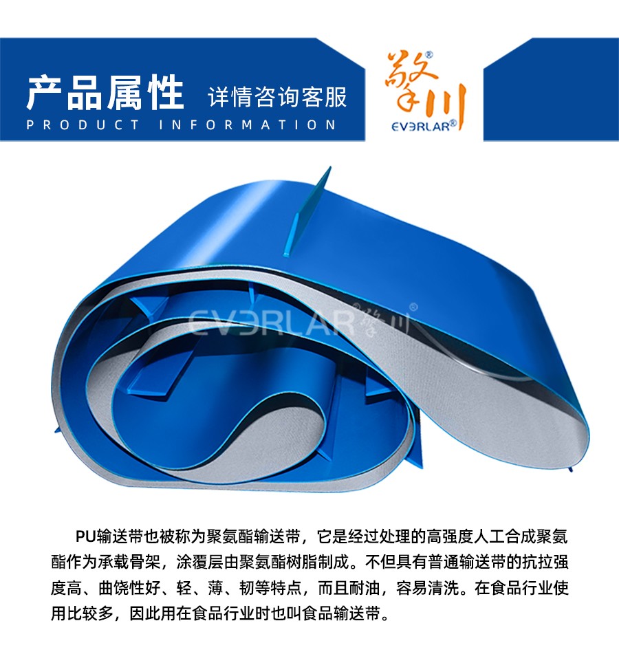 產(chǎn)品名稱:藍(lán)色PU輸送帶加擋板