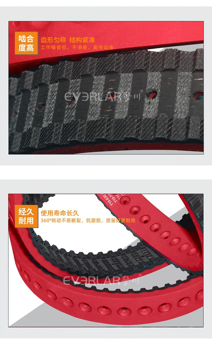 | 特種加工 | 1.底帶的選擇:橡膠同步帶或PU(聚氨酯)同步帶,均可; 2.開槽加工:底帶開槽的具體寬度、深度由客戶指定; | ||