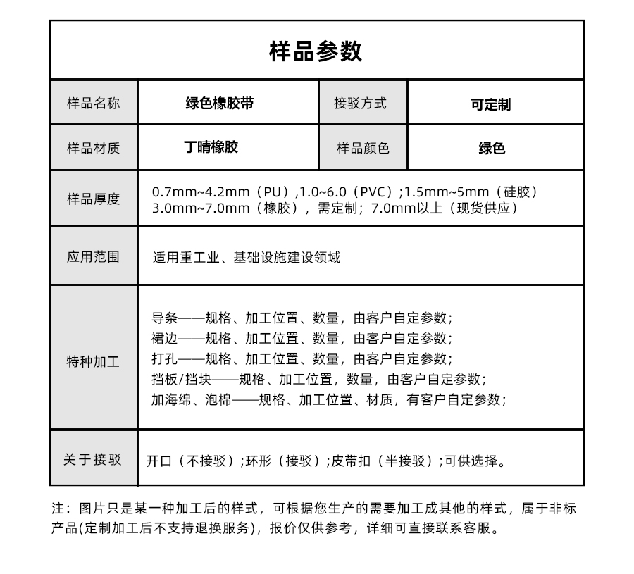 | 樣品名稱 | 綠色橡膠帶 | 加工方式 | 定制 |