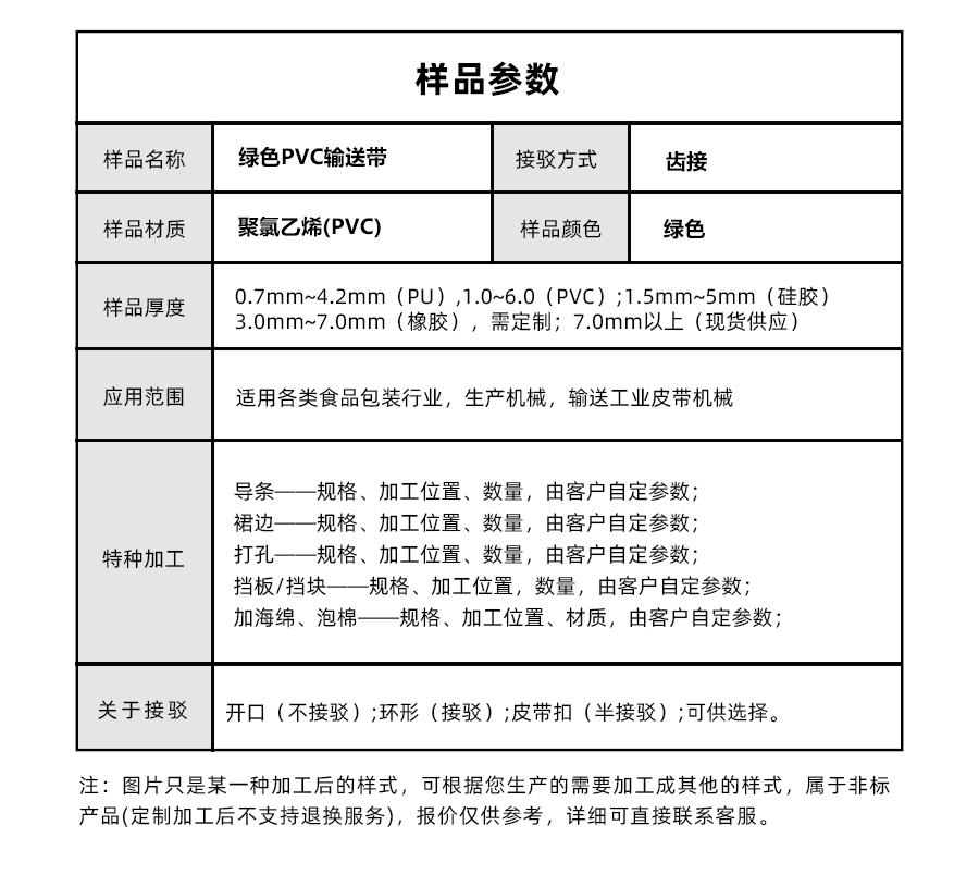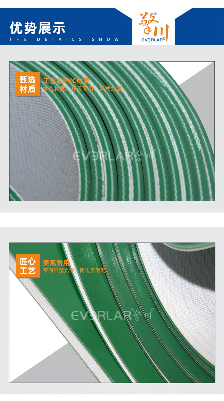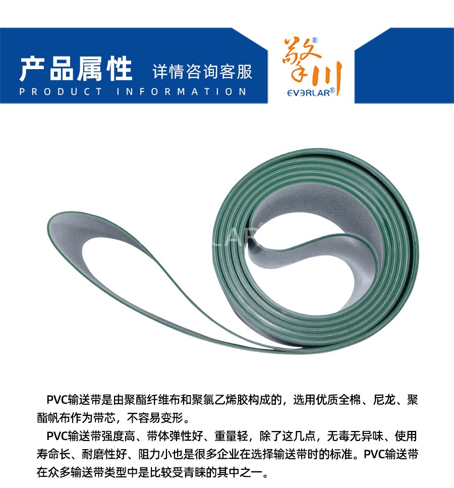 產(chǎn)品名稱:PVC輸送帶綠色運(yùn)輸帶耐磨阻力小無異味有彈性