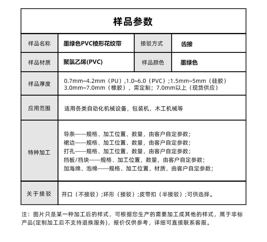 產(chǎn)品名稱:墨綠色PVC輸送帶耐磨防滑食品輸送帶工業(yè)皮帶