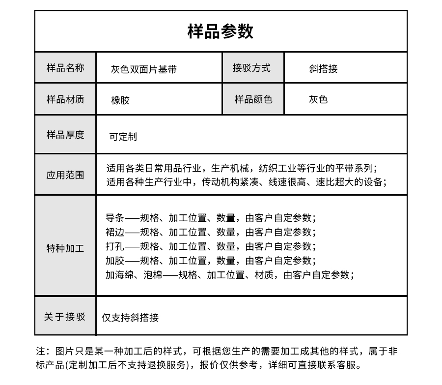 產(chǎn)品名稱:灰色雙面片基帶擎川橡膠尼龍輸送帶工業(yè)皮帶