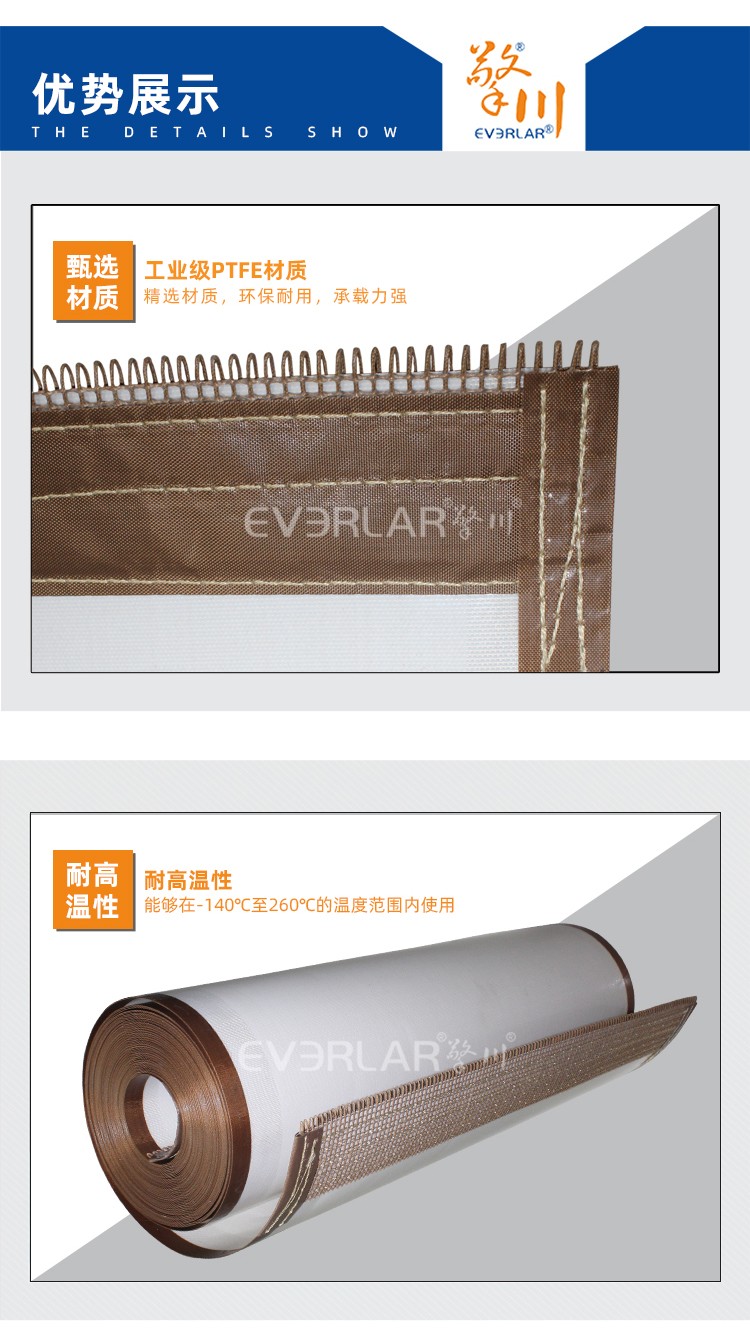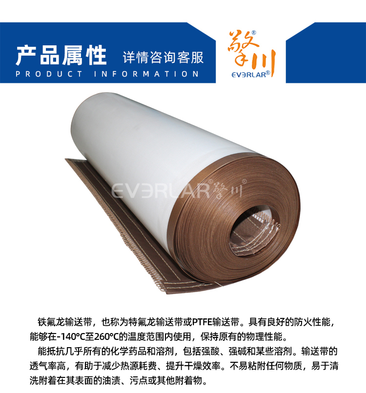 產(chǎn)品名稱(chēng):鐵氟龍輸送帶耐磨耐腐蝕耐高溫工業(yè)皮帶定制