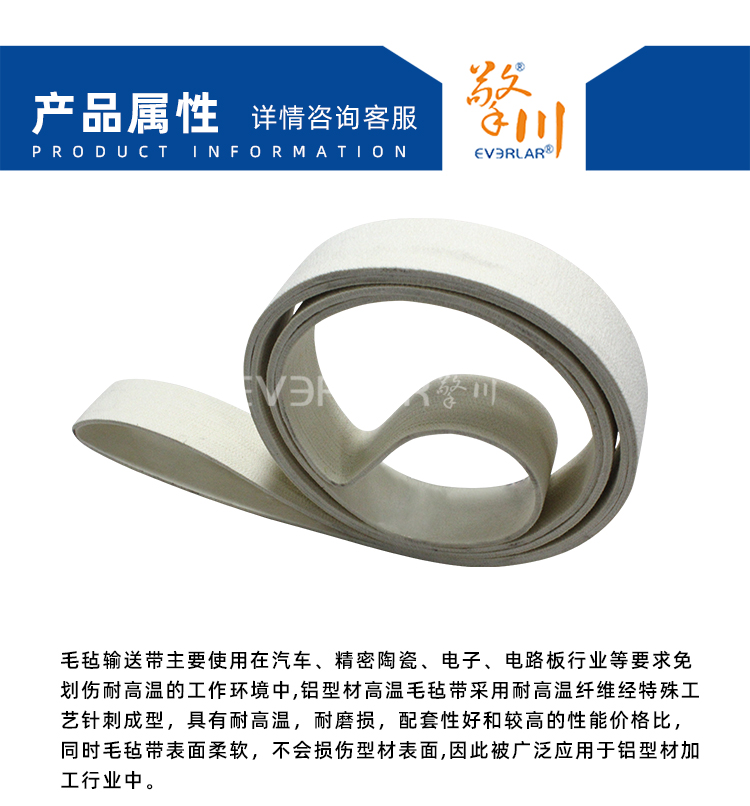 產(chǎn)品名稱(chēng):凱夫拉毛氈輸送帶耐磨耐高溫耐腐蝕工業(yè)皮帶定制
