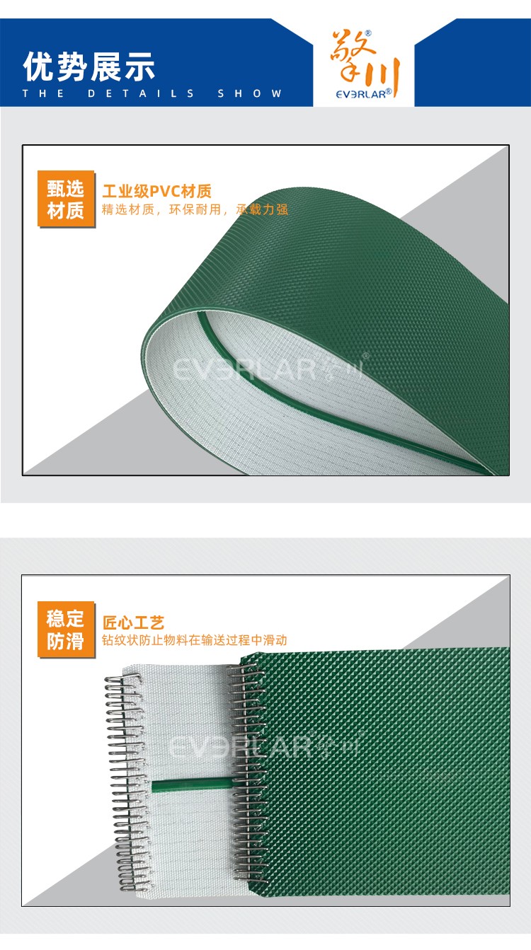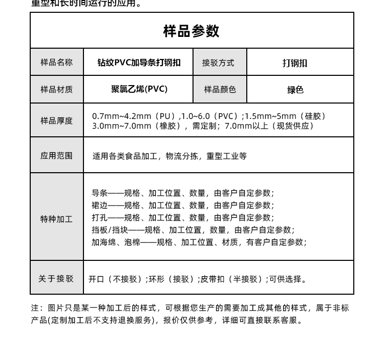 產(chǎn)品名稱:鉆紋PVC加導(dǎo)條打鋼扣耐磨平穩(wěn)防滑工業(yè)皮帶