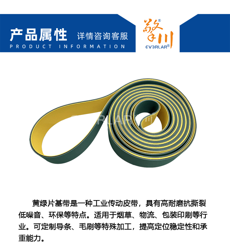 產(chǎn)品名稱:黃綠片基帶抗拉防滑印刷紡織行業(yè)高速傳動平皮帶工業(yè)廠家定制