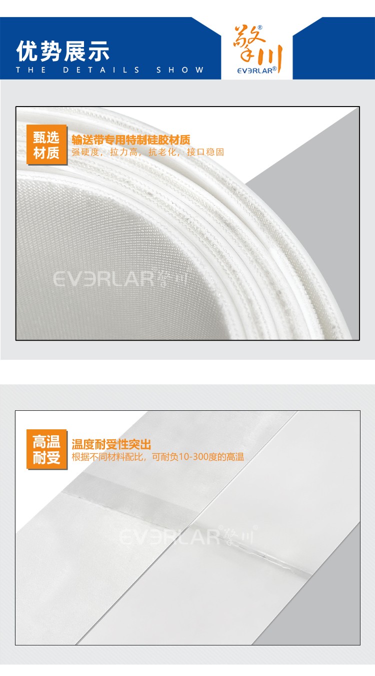 產(chǎn)品名稱:白色硅膠輸送帶耐高溫防腐蝕食品 醫(yī)療 日化輸送設(shè)備傳動(dòng)皮帶擎川定制