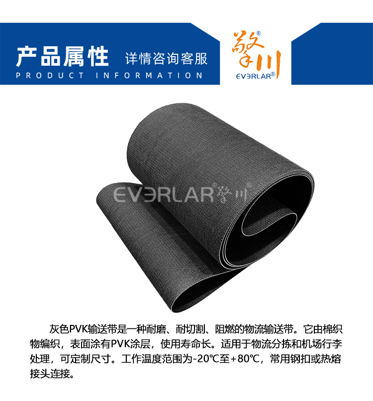 產(chǎn)品名稱:灰色PVK輸送帶耐磨抗撕裂物流分揀輸送機(jī)專用工業(yè)皮帶廠家定制