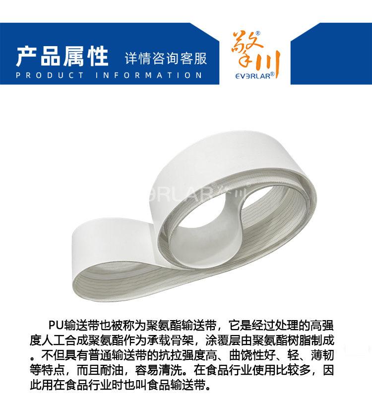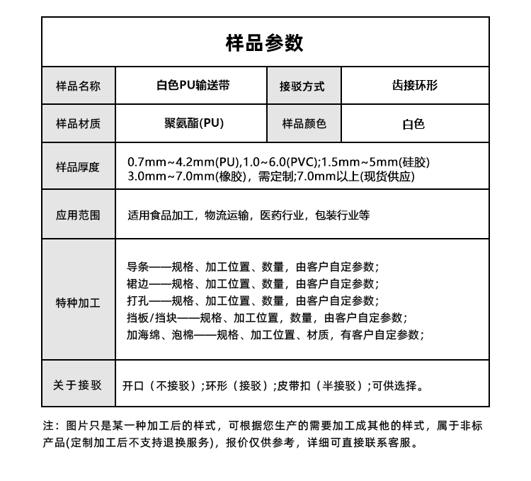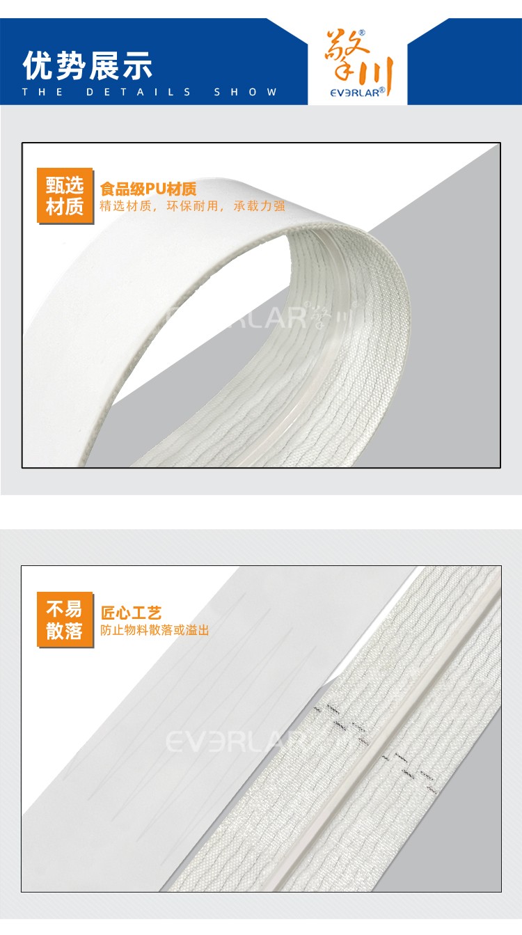 產(chǎn)品名稱:白色食品級(jí)PU輸送帶加導(dǎo)條耐磨耐油日化行業(yè)輸送機(jī)械皮帶加工定制