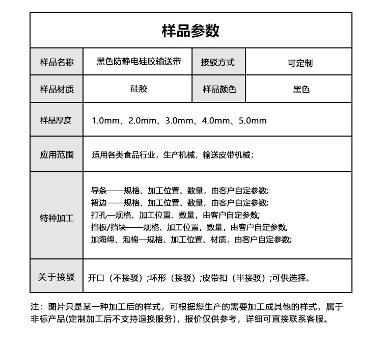 產(chǎn)品名稱:黑色硅膠防靜電輸送帶耐磨防滑精密儀器電子行業(yè)貼片機(jī)傳送帶