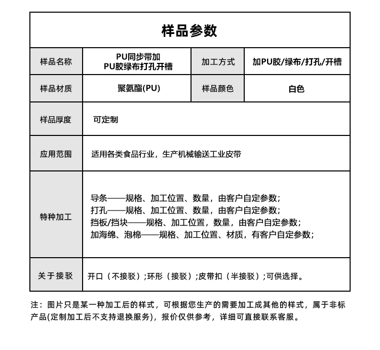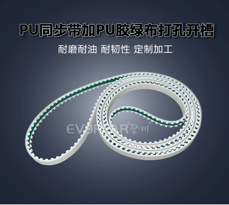 產(chǎn)品名稱:PU同步帶加PU膠綠布打孔開槽精準(zhǔn)傳動防滑包裝機(jī)械聚氨酯工業(yè)皮帶定制